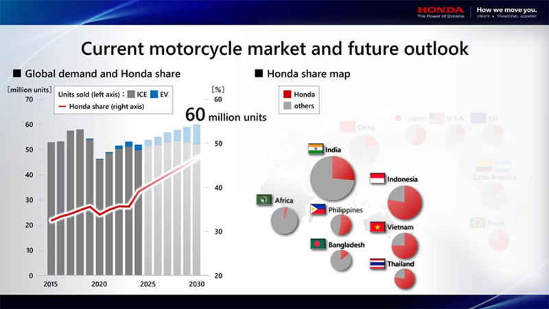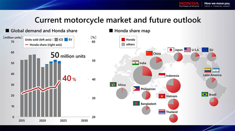 Honda has laid out its expectations and targets in briefing on its global motorcycle business including the ambitious long-term aim of capturing a 50% share of the worldwide market.