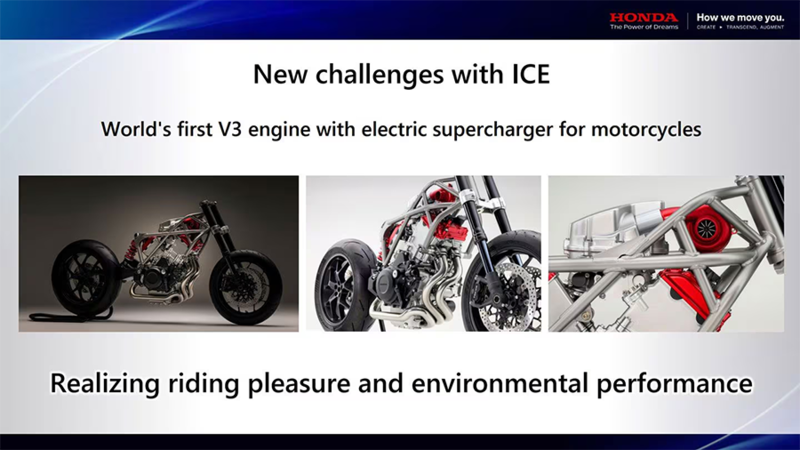 Although Honda made little direct mention of its plans for North America in the briefing, the company outlined its strategy for Europe where similar bikes—described as large, low-volume, high-variety models—are popular, saying that it’s increasing its use of “common platforms†where multiple different models are built around a shared chassis and engine. That’s already something the company is skilled at; it’s used common platforms for years on bikes like the CB500-based range and CB650 lineup, and more recently the Africa Twin has shown how a diverse array of machines can be built from a shared set of components, with a range that now includes the NT1100 tourer (expected to come to the US market soon) and, in Japan, the Hawk 11 cafe racer. The next platform expected to come to fruition is the tube frame chassis and radical electric-supercharged V-3 engine that Honda showed at EICMA last year. The company says it will be adopted in future models (plural).