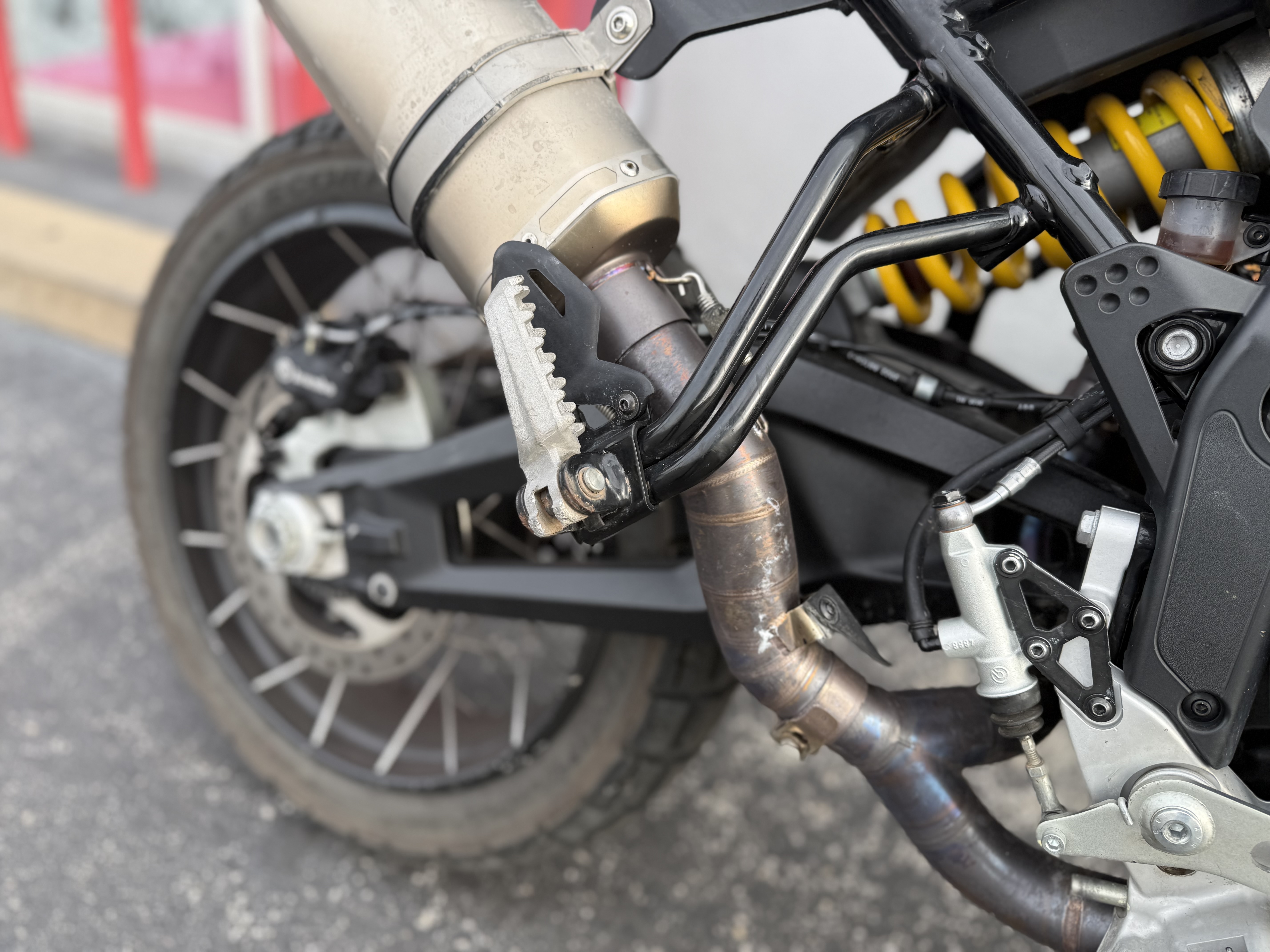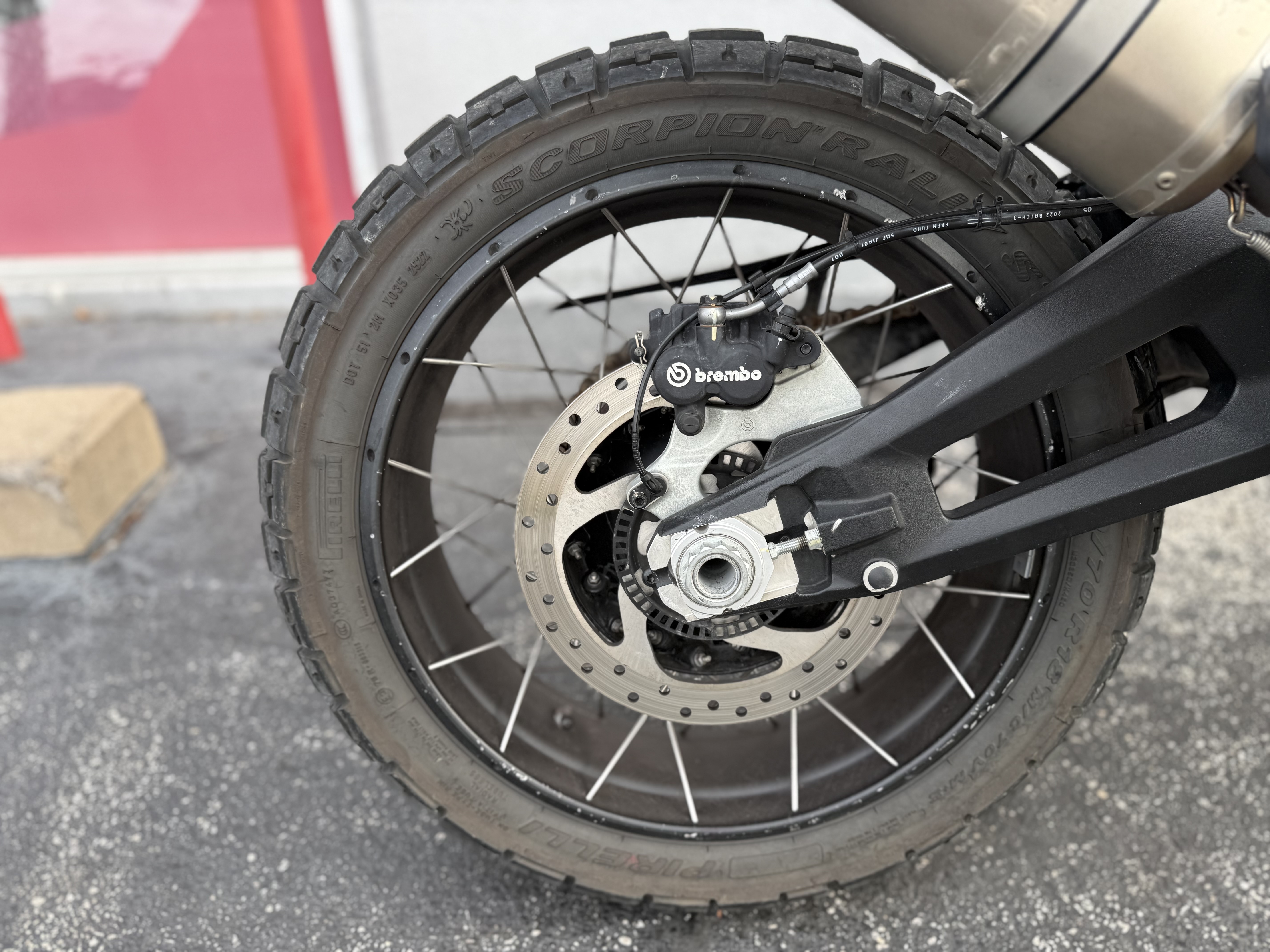 2 x Ø 320 mm aluminum flange semi-floating discs, Radial mount Brembo monobloc 4-pistons calipers, Bosch Cornering ABS