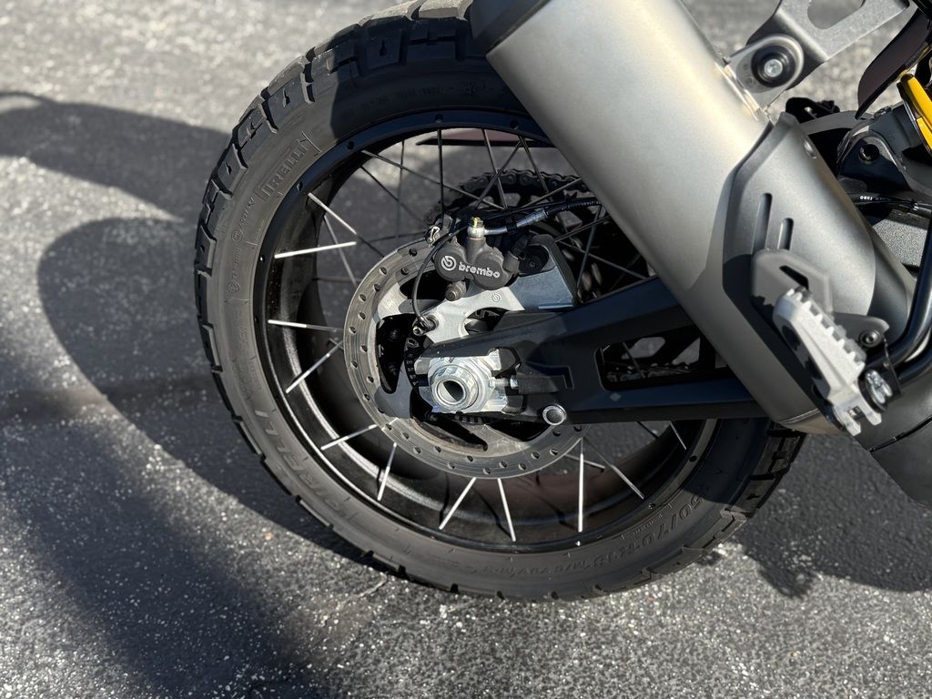 DesertX is equipped with the latest evolution of the 937 cc Testastretta 11th desmo, lighter by 3.7 lb compared to the previous generation and equipped with a new gear ratio to ensure the best off-road behavior.
