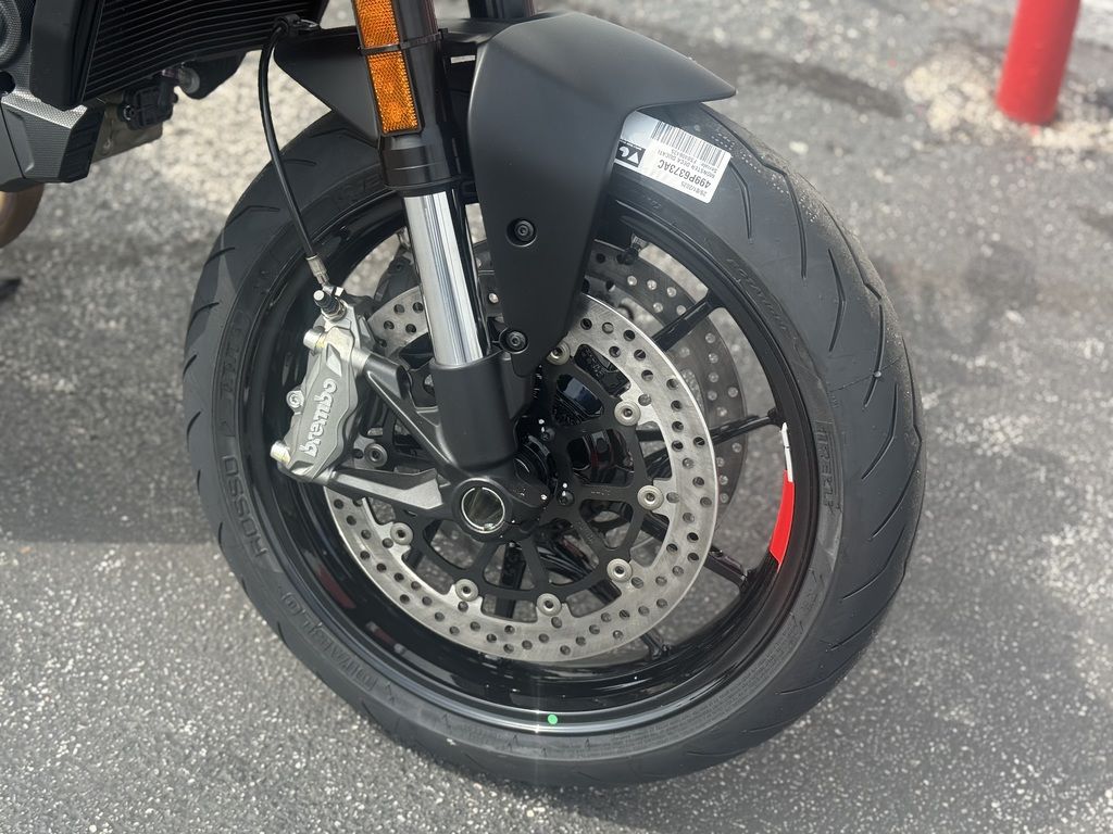 The Monster mounts the 937 cc Testastretta 11° engine with desmodromic timing. Delivering 111 hp @ 9,250 rpm, the engine is smooth and controlled at low speeds, navigating traffic without hesitation, but also dynamic at mid to high speeds, for electrifying performance in every situation. Its contained weight contributes to the bike's overall lightness and heightens rideability.