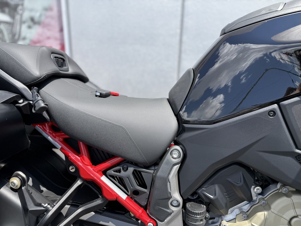 The semi-active suspension and optimised aerodynamic protection ensure a smooth, relaxed ride, while improved ergonomics and customisation options allow the bike to be adapted to your specific needs. With the new Multistrada V4, every journey becomes a comfortable, no-compromise riding experience.