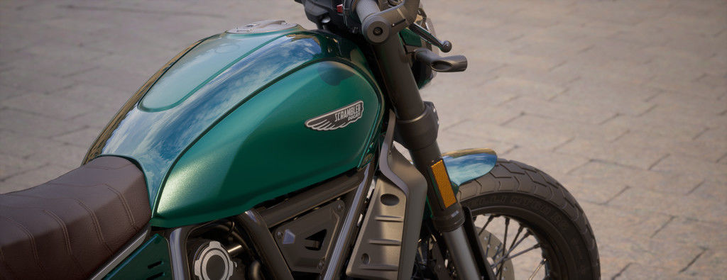 The Scrambler® Nightshift stands out for its unique blend of style and character. The renewed seat, with its distinct texture, perfectly complements the Emerald Green livery, enhancing the bike’s elegant and timeless attitude.