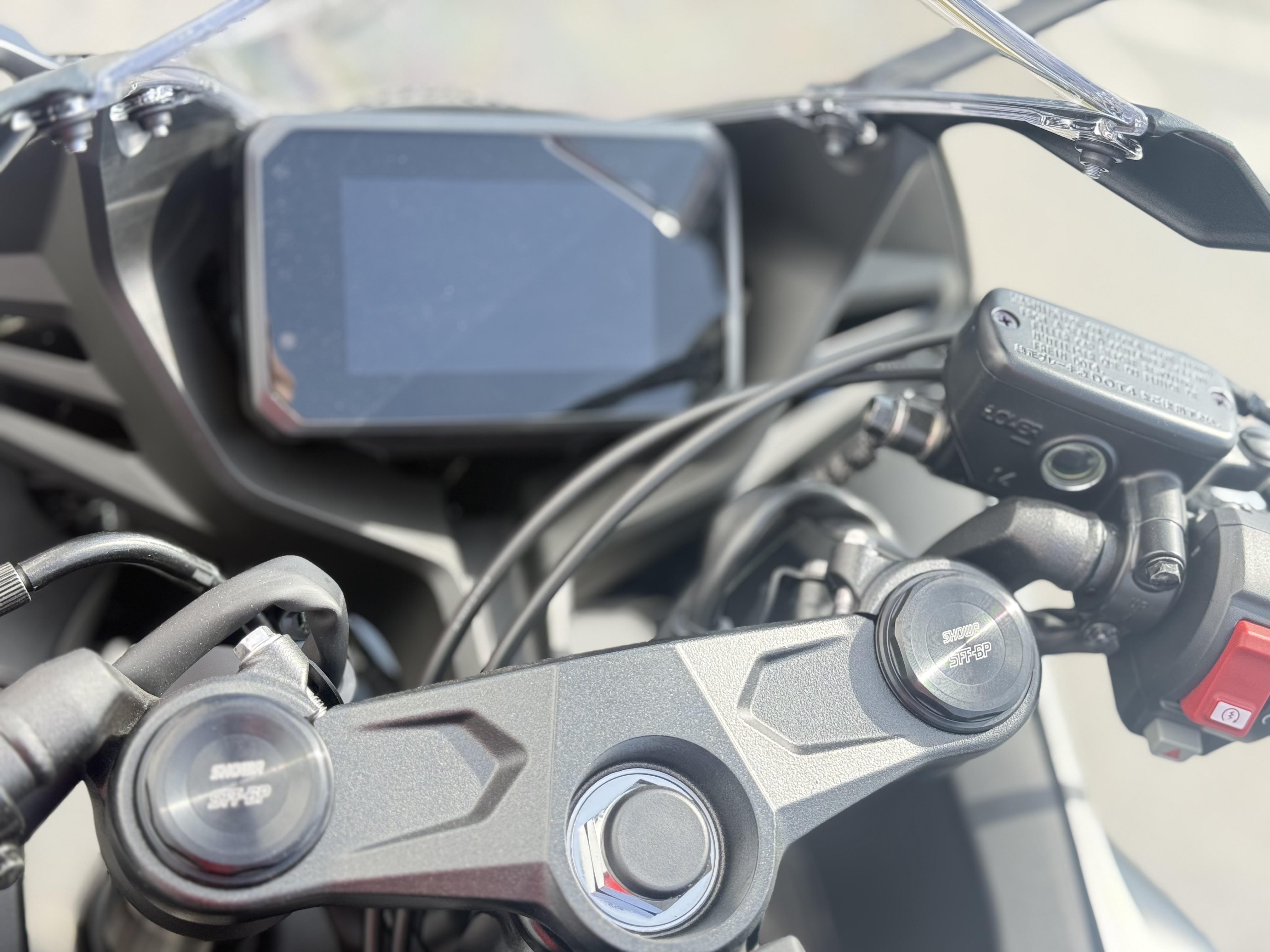 - Showa's Separate Function Front Fork Big Piston (SFF-BP) design features light overall weight and excellent rigidity, as well as radial mounting points for the bike's twin front-brake calipers.