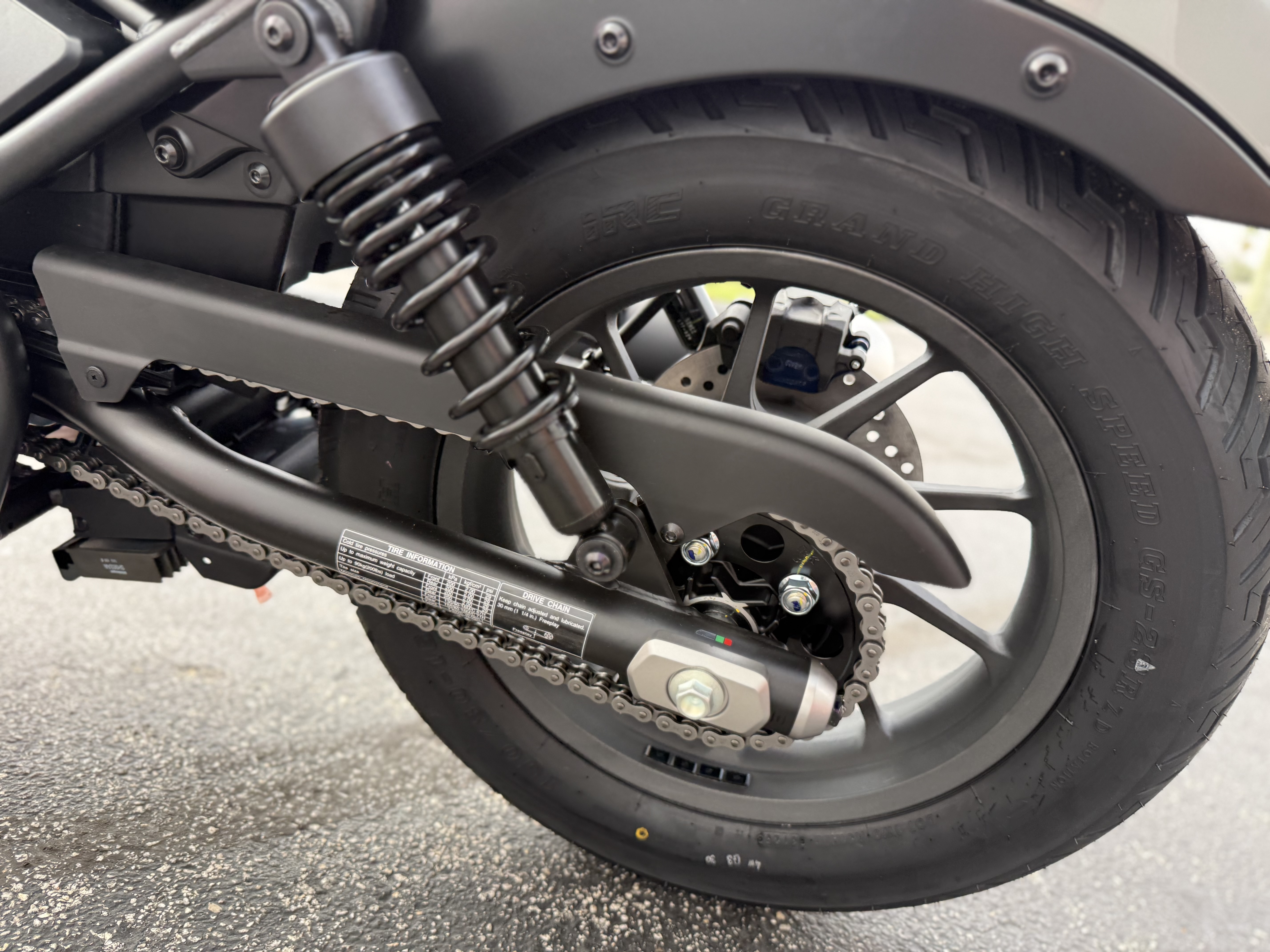 - Front and rear disc brakes