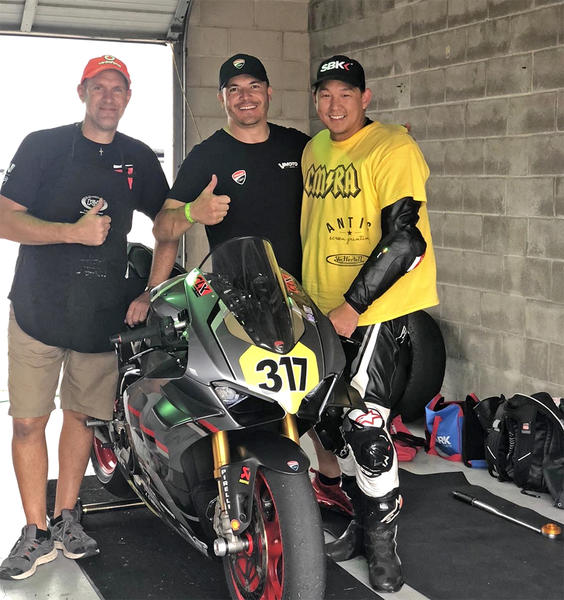 Carlos, along with V1’s Master Ducati Tech, David Speeks alongside customer Colin Lue King for his first CMRA race.