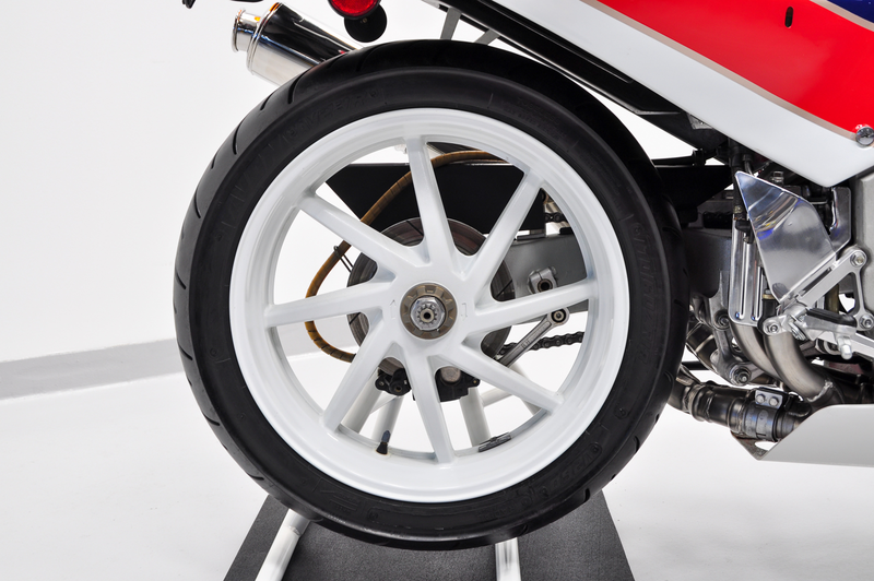 Chassis-wise, the RC30 was closely based on the aluminum twin-spar RVF750 with what Honda called the Diamond frame concept which used the engine unit as a stressed member. The RVF had made good use of the Elf-patented single-sided swinging arm (Honda paid a royalties to the French fuel company for each item produced) with the wheel retained by a single nut which allowed rapid wheel changes where the rear sprocket and chain remained in place, and the RC30 retained this feature.