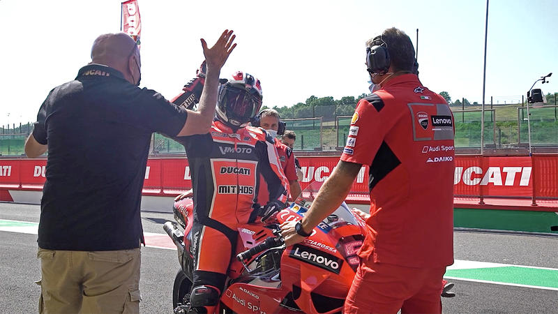 It’s not everyday that you get to take command of a MotoGP crew at the legendary Mugello circuit. But there he is, sitting in Michele Pirro’s chair receiving some instruction from his crew chief.